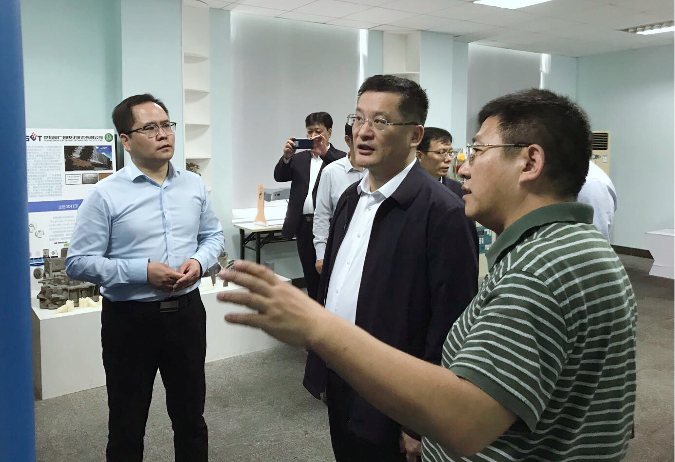 (趙雷一行參觀(guān)人工智能展廳和3D打印實(shí)驗(yàn)室)